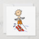 A stick figure boy water skis on cute stick figure water skiing T-shirts, mugs, mousepads, cards, stickers, and more, great for anyone who loves the beach and water skiing, can be customised with text or a name!