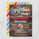 The template features a barn wood base, colourful "splash" and "party" text graphics, and a colourful matching back. Personalise by typing your own wording over the sample text. You can also add other text or personal images. To access advanced editing tools, please go to “Personalise”, and scroll down to access the “design tool” link.