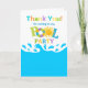 Make a splash with this fun water splash pool party thank you card. Perfect for your swimming birthday party or special event in style. Personalise with your own special text, font, font colour and use it for the party or event of your choice.