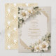 Watercolor 3D white flowers gold Bridal Shower Invitation