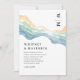 Abstract summer wedding invitations featuring a simple white background, a watercolor beach palette design, your initials in the top right corner, a elegant text template with your names, and the wedding details.