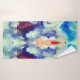 Elegant, modern watercolor abstract design in red, white, purple, blue.