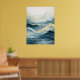The poster is a watercolor abstraction in dark blue and green, yellow tones, which represents the smooth waves of the sea. Artfully executed transitions of colour and tones create a sense of depth and movement, which gives the image naturalness and dynamics.