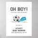 Sport baby shower theme, football baby shower theme, soccer baby shower theme, design feature modern minimalist simple watercolor soccer ball and blue sport shoes with typography 'Oh Boy! , A little all star is on the way" text. Perfect for your little slugger or your rookie baby theme, you can customize your own unique text and color.