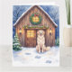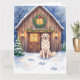 Celebrate the season with this peaceful Christmas card featuring an Anatolian Shepherd Dog sitting beside a rustic barn adorned with glowing holiday wreaths. Rendered in a soft watercolor style, the snowy ground and gentle paw prints add cozy winter charm. Perfect for dog lovers and pet parents, this card’s blank interior allows you to write a personal, heartfelt message for the holidays.