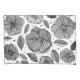 Delicate flowers and leaves made with watercolor shapes and inked details. Black and white palette.