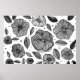Delicate flowers and leaves made with watercolor shapes and inked details. Black and white palette.