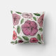 Watercolor and ink flowers – pink and green cushion