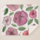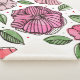 Delicate flowers and leaves made with watercolor shapes and inked details. Pink and green palette.