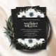 Elegant watercolor bouquet of black and white anemone flowers and leaves on a black background features your wedding ceremony details in chic white lettering. MATCHING items in our store.