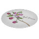 Pretty kitchen accessory features watercolor botanical style floral illustration of pink apple blossoms on branch with script text font
