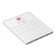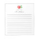 Cute lined notepad design for teachers feature "a note from" and your name in black block and script lettering, topped by a single red watercolor apple illustration.