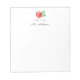 Cute notepad design for teachers feature "a note from" and your name in black block and script lettering, topped by a single red watercolor apple illustration.