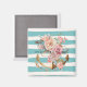 Watercolor Aqua Beach Stripes Floral Anchor Magnet