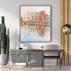 Bring serene European charm into your space with this stunning Amsterdam canal skyline watercolor artwork. This piece captures a peaceful sunset view of modern Amsterdam architecture reflected in calm canal waters, blending soft pastel skies with warm glowing city lights. The delicate watercolor texture and painterly brushstrokes create a dreamy, elegant atmosphere—perfect for home décor, office walls, travel lovers, and urban art collectors. Ideal as wall art, posters, canvas prints, stationery, or gifts for those who appreciate contemporary cityscapes, European travel, and minimalist modern design.