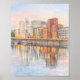 Watercolor Art – Modern City Reflection at Sunset Poster