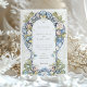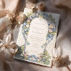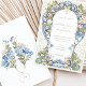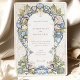 Rendered in a delicate painterly style, the florals and foliage echo the elegance of early 1900s decorative arts. The refined typography pairs classic serif fonts with subtle modern touches, while the initials and year are subtly integrated into the ornamental border. The back of the card complements the front with a mirrored floral crest featuring blue wildflowers and stylised tendrils, emphasizing elegance and harmony. Ideal for romantic, garden, or classical wedding themes.