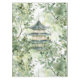 This tablecloth features a traditional Asian-style pagoda rendered in delicate watercolor strokes, set amidst a lush green landscape. The design draws inspiration from the architectural elegance found in Japan, China, Korea, and Vietnam, capturing the serene beauty of nature intertwined with cultural heritage. The harmonious blend of verdant hues and intricate details evokes a sense of tranquillity and timelessness, making it a versatile piece for various artistic applications.