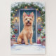 Share cozy holiday greetings with this charming Christmas card featuring an Australian Silky Terrier sitting on a festive snowy doorstep. Soft watercolor strokes, glowing lantern light, and decorative garland create a warm seasonal mood perfect for dog lovers. With a blank interior for your personal message, this card is ideal for holiday gifting, heartfelt notes, and breed-themed stationery collections.