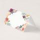 A whimsical floral place card featuring watercolor orange and purple peonies, roses and other floral accents. These cards are perfect for autumn, and boho-themed events. Matching items are available.