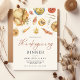 A modern and elegant rustic thanksgiving dinner invitation featuring hand-painted pumpkin pie, cranberry sauce, backed turkey, vegetables, traditional dishes and table setting elements.