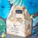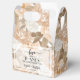 A collage of elegant peach, terracotta, and silver watercolor flowers and brown leaves are featured on this gable style favor box, perfect for weddings occasions. MATCHING tissue paper and other items in our collection.