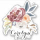 Watercolor custom-cut vinyl sticker featuring watercolor illustrations of orange, white and burgundy autumn flowers with foliage accent. Personalise by adding your name. This floral sticker will be a perfect decal for your laptop, tablet, phone and so much more. This customisable sticker is also great for organising, gift wrapping and labelling.