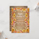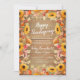 Rustic thanksgiving dinner invitation with watercolor leaves, berries sunflowers and pumpkins arranged in a frame on a wooden background. Bright and vibrant autumn colours in rusty brown, orange, red and yellow.