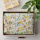 A nature themed tissue paper featuring things found on the forest floor such as snails, foliage, mushrooms, rocks and more illustrated with watercolor in fall shades of golden yellows, blues, and earth tones. Very nice for autumn gifts!