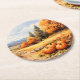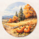 Watercolor Autumn Road Pumpkin Falling Leaves Round Paper Coaster