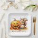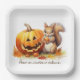 Watercolor Autumn Squirrel With Jack-o-lantern Paper Plate