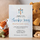 Celebrate the special occasion of your baby boy's baptism with our elegant and customisable invitation card. The design features a serene watercolor blue background, adorned with a simple yet graceful cross, embodying a gentle and heartfelt touch. The minimalist style ensures a timeless appeal, perfect for commemorating this sacred event. Easily personalise the details to create a unique and memorable invitation for your cherished guests.