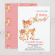 Watercolor Baby Deer Flowers Pink Baby Shower Invitation