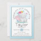 Watercolor Baby Elephant with Flowers Birthday Invitation