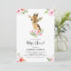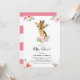 Watercolor Baby Giraffe Pink Hibiscus Baby Shower Invitation