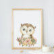 This adorable boho watercolor wall art piece of a baby owl is perfect for any child's room. With soft-coloured flowers and a cute owl, this poster will make the perfect accent to your little one's room.