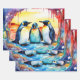Watercolor Baby Penguin Playing in Snow Wrapping Paper Sheet