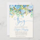A elegant classic baby shower invitation that creates a timeless look for your event. Set on a background with a natural arrangement of green and blue foliage framing the top text and touches of that same greenery foliage to frame the invitation at the backside. This invitation has plenty of space in the middle to customise and create the perfect invitation for your party.