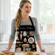 Watercolor Baking Tools Pattern Black Apron