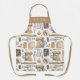 Delight the cook in your house with this personalized apron, featuring a pattern of watercolor baking tools, such as standing mixers, rolling pins and pastry tubes, on a white background. Near the top, the words "[Your Name's] Kitchen" or other text of your choice appear in editable handwriting script on a light brown background.