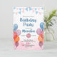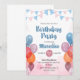 Watercolor Balloon girl birthday Invitation Card