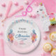 Easily customise Watercolor Balloon girl Birthday party Paper plate design with your text ,