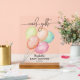 Multi-colour watercolor balloons are a fun design for a baby shower, your details along with the word "Cards + Gifts" are featured at the top of this clear tabletop acrylic sign. CHANGE THE SIZE to fit your event and order with or without a wood stand. MATCHING items in our collection.
