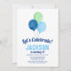 Cute balloon birthday invitation for a little boy. This design features hand painted watercolor balloons in blue, navy and green.