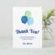 Cute boy birthday thank you cards featuring watercolor balloons in blue, green and navy blue.