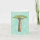 Design features large baobab tree, prominent in Africa and Australia, on watercolor stained aqua / gold dots background