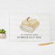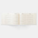 Personalised bathroom guest book featuring natural soap, a lotion bottle, towels and a shell with a subtle chevron background.
