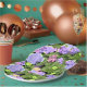 Enjoy a bounty of beautiful pink & lavender blue hydrangeas all year 'round w/ these premium quality paper plates featuring an original impressionistic digital watercolor painting by digital artist, Leslie Sigal Javorek, w/ batik inspired elements. Combine w/ coordinating party supplies from HoMeArts for that special Bridal Shower, Easter gathering, or Garden Tea Party!