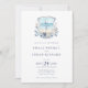 This elegant coastal wedding invitation features a watercolor beach wedding crest with monogram initials of the bride and groom, and the wedding date on the banner of the crest.