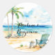Watercolor Beach Scene Wedding Classic Round Sticker